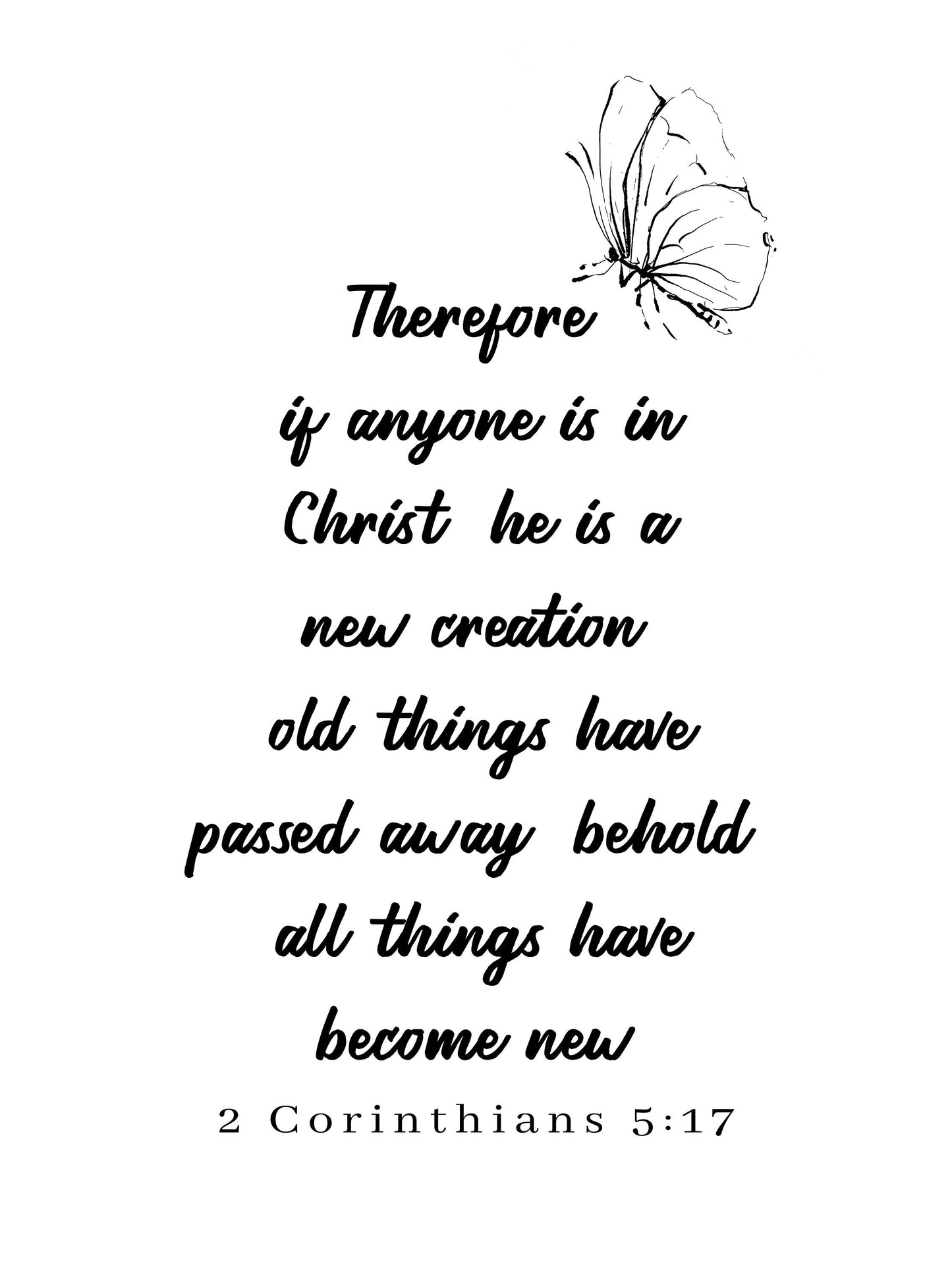 This listing is for a minimalist yet artistic bible quote poster from the bible verse "2 Corinthians 5:17". Put a smile on someone's face because this would be an excellent gift for them! It would also be a cool decoration inside your home! ☺️