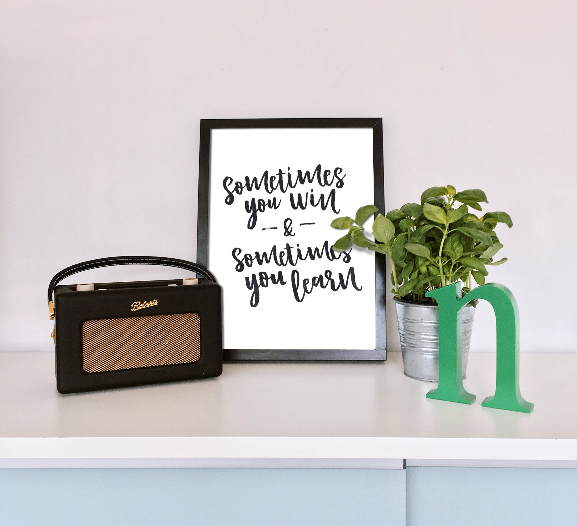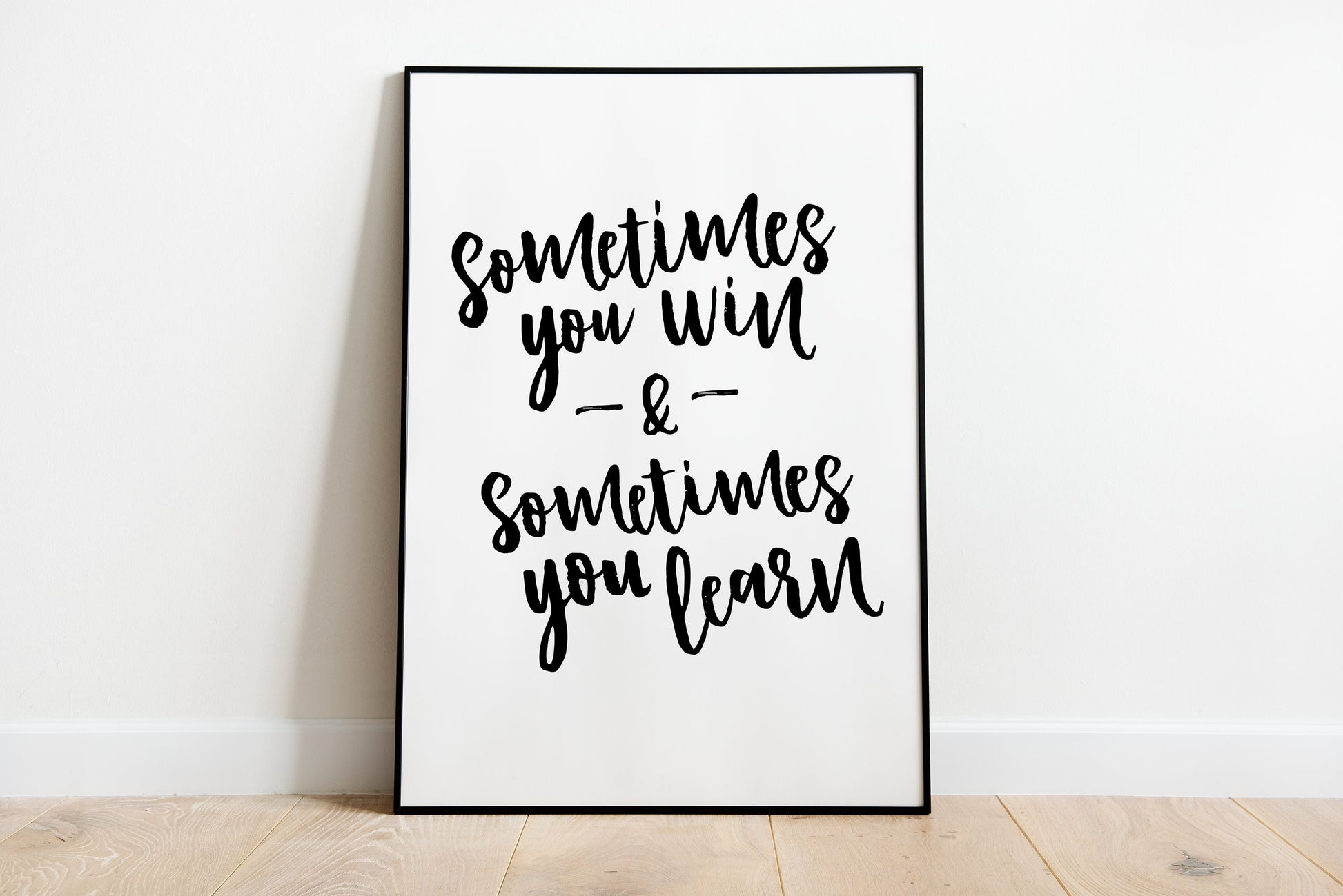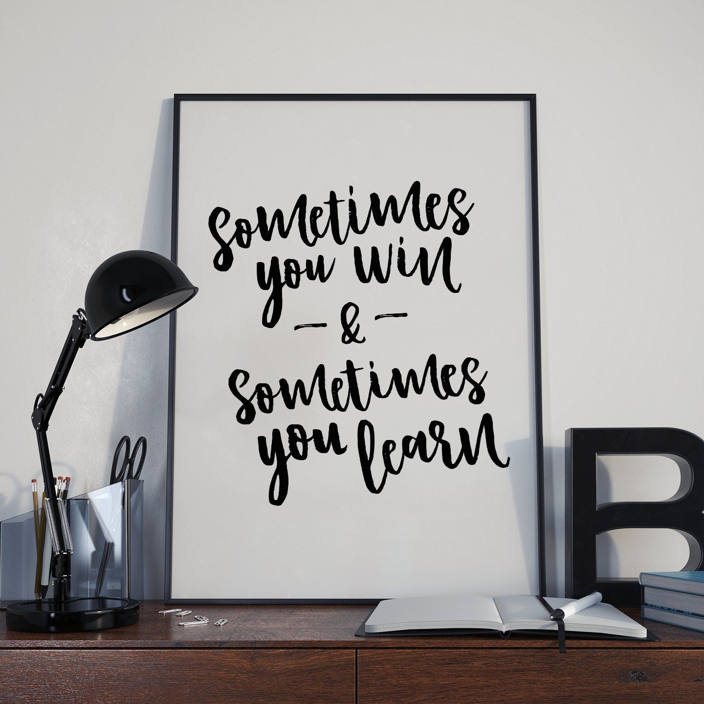 This listing is for a unique poster which says "Sometimes you win, Sometimes you learn". This listing only found at our shop that would look great in your home or a friend’s home! The perfect gift.